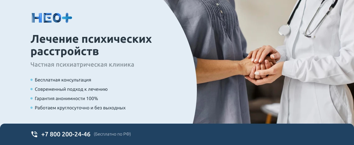 Депрессия – эмоциональное расстройство, которое влияет на качество жизни и отражается на межличностных отношениях. В запущенных ситуациях у пациента могут появляться суицидальные мысли, что делает его опасным для себя самого. Без помощи специалистов нормализовать состояние и вернуться к нормальной жизни не всегда возможно. Необходимо лечение депрессии. Провести процедуру можно, обратившись в клинику «НеоПлюс» в Еманжелинске. У нас работают психотерапевты, способны помочь даже в тяжелых случаях. Они проведут предварительную диагностику, грамотно поставят диагноз и назначат правильное лечение. Чтобы начать сотрудничество, позвоните по телефону ☎️ +7 (800) 200-24-46 или воспользуйтесь формой обратной связи на сайте. Доверяя лечение нам, вы ускоряете процесс нормализации состояния и сможете быстрее вернуться к обычной жизни.